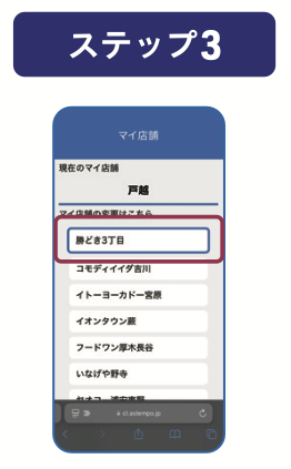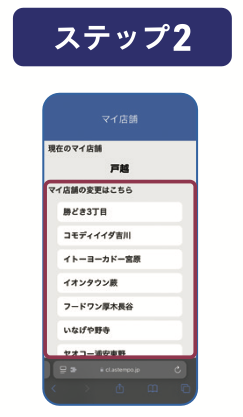 「マイ店舗の変更はこちら」から変更したい店舗を探します。