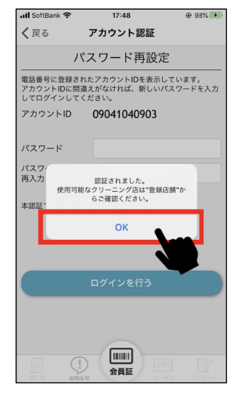 8.成功すると、以下の画面が表示されますので「OK」をタップしてください。